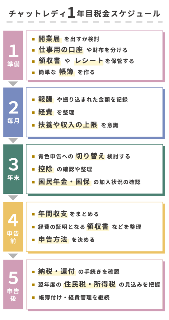 チャットレディ1年目は、「記録を残すこと」と「扶養・控除のラインを意識すること」が最大のポイントです。